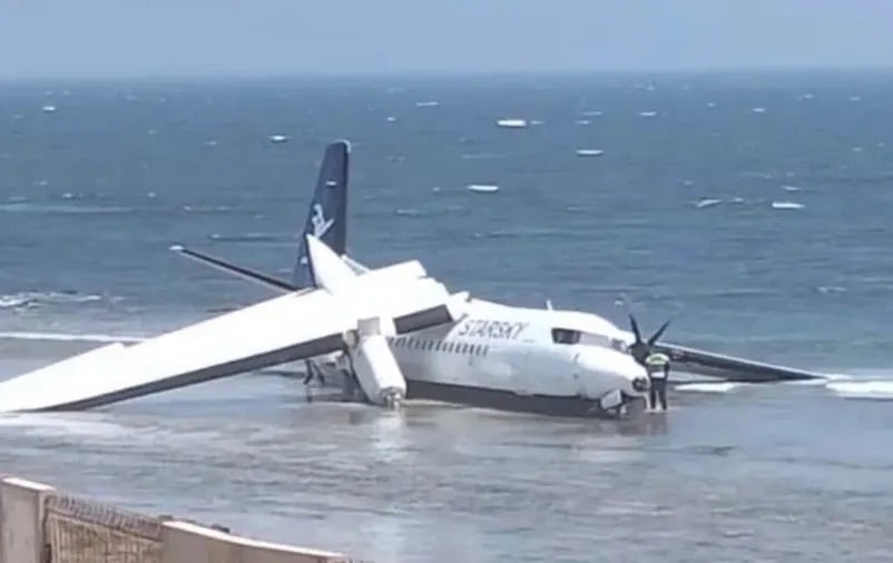 All passengers and crew survived after a Starsky airline aircraft crashed along the Indian Ocean shoreline near Mogadishu airport on Tuesday following technical difficulties that forced the pilot to attempt an emergency return.